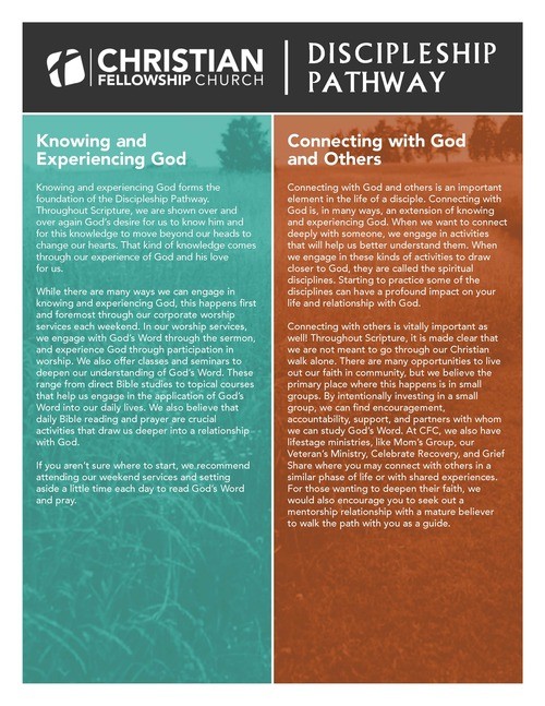 A great place to find out more about CFC is our Intro to CFC class. It is led by some of our elders and staff. You will learn about the mission, vision, and values of CFC,